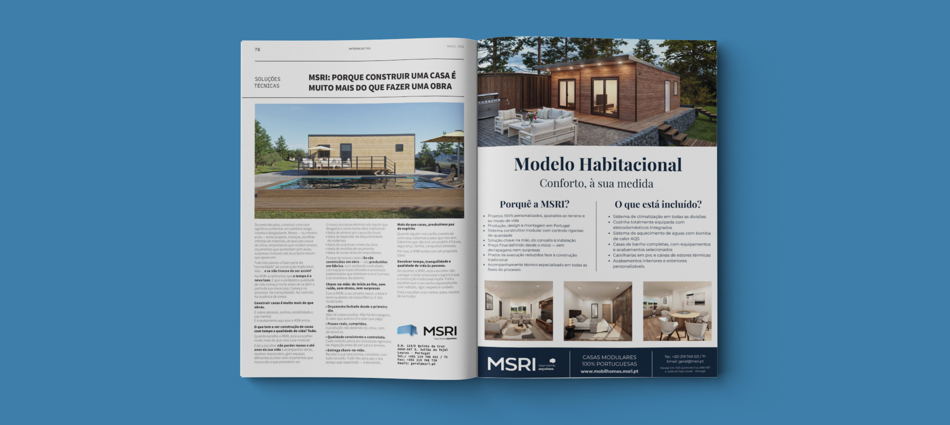 Apesar de trabalharmos com uma lógica modular, a personalização é uma parte central da nossa identidade. Mesmo dispondo de várias plantas e modelos, começamos por compreender a fundo o que o cliente procura e como vive. Só depois desenvolvemos uma solução ajustada a esse perfil e, quando tudo está definido ao detalhe, o projeto segue para fábrica. A MSRI oferece personalização desde a distribuição interior aos acabamentos exteriores, incluindo soluções de carpintaria à medida, uma vez que dispomos de produção própria nesta área. Desta forma, cada cliente consegue criar uma casa que reflete a sua identidade, mantendo sempre a eficiência técnica e a consistência construtiva.