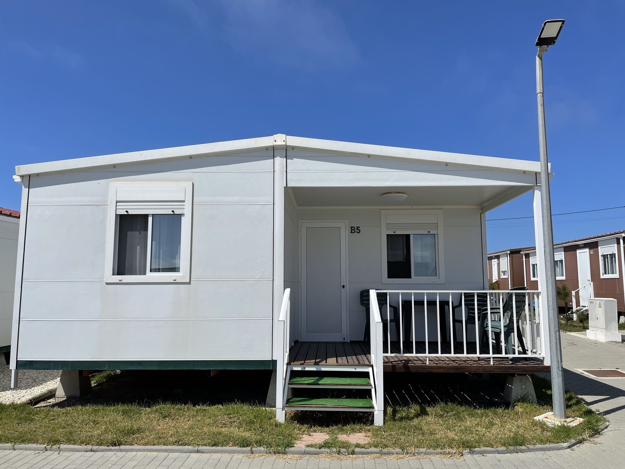 Os Bungalows destacam-se pela sua construção adaptável, que pode incluir acabamentos em madeira, PVC ou alumínio lacado, com ou sem deck. Supreendentemente espaçosos e altamente funcionais, os bungalows oferecem um retiro confortável em harmonia com a Natureza.
