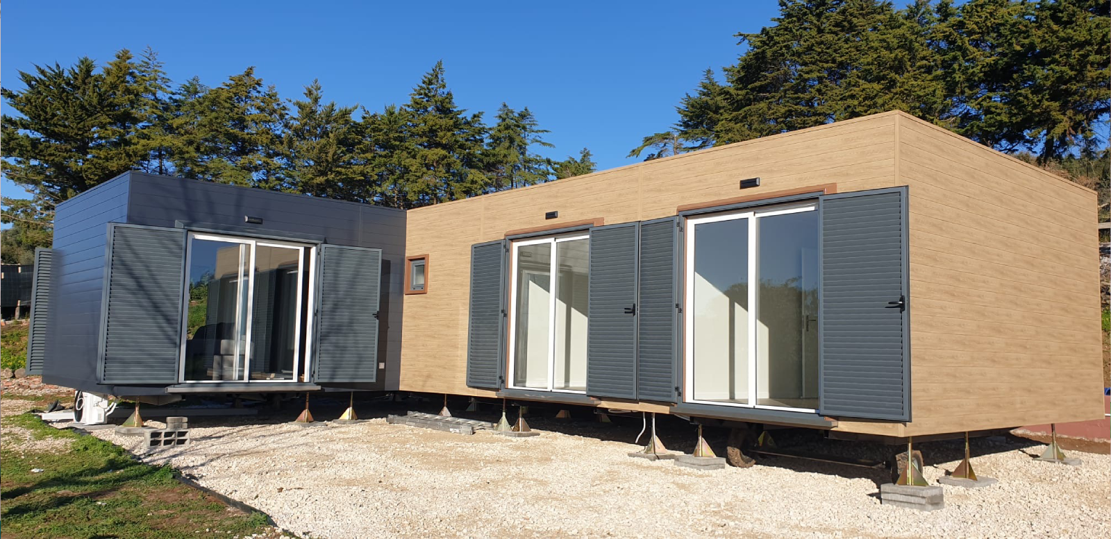 Versátil e flexível, o Modelo Mediterrâneo é perfeito como habitação permanente, casa de férias ou até mesmo como espaço de trabalho, ou todas essas opções reunidas numa única casa modular. Qualidade, conforto e personalização estão garantidos em cada projeto.